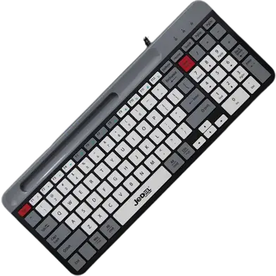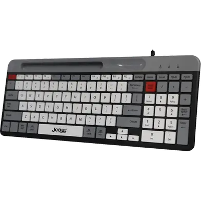 The Jedel K37 JD-K37 wired keyboard offers a smooth typing experience. The slim, chocolate-wired keyboard fits easily on desks. The Jedel keyboard with holder supports mobile devices. The K37 wired mobile keyboard connects fast and stays stable.