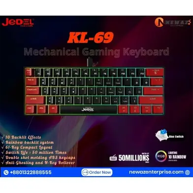 Computer Accessories, Gaming Keyboard (গেমিং কীবোর্ড), Keyboard (কীবোর্ড), Techbird, Wired KeyboardJedel KL69 Wired 68 Key Mechanical Keyboard Blue Switch With Rgb Backlit
