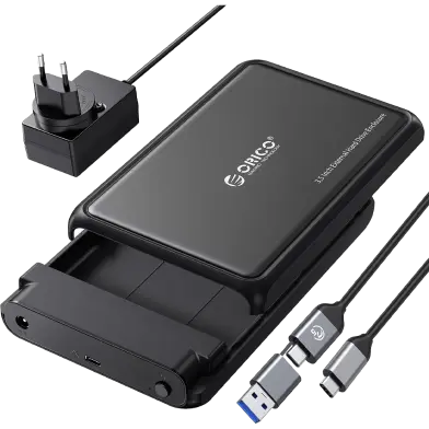 The Orico DDL35-C3-BK 3.5-inch enclosure is a black external case for 3.5-inch hard drives. This black 3.5-inch drive enclosure offers strong protection. The Orico 3.5-inch HDD dock makes it easy to connect and use.